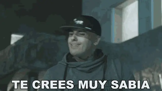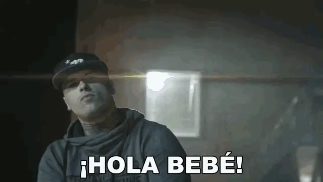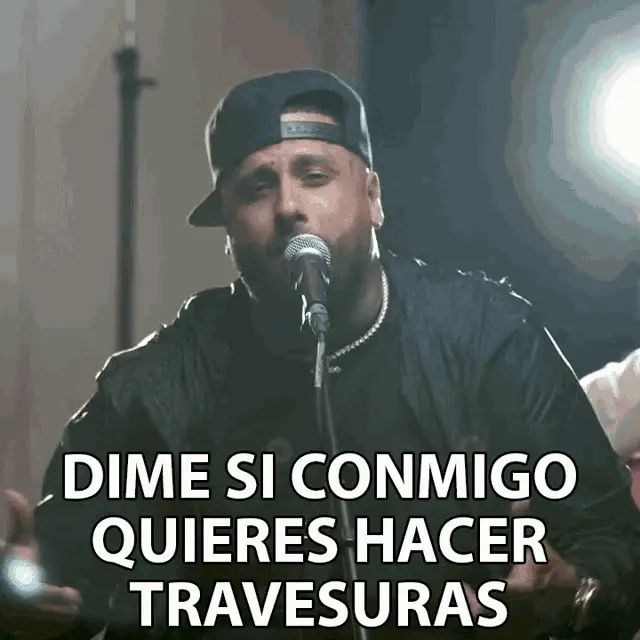 Nicky Jam delivers the iconic line 'Te Lo Digo Mujer' while sitting on a couch, wearing sunglasses and a cap.