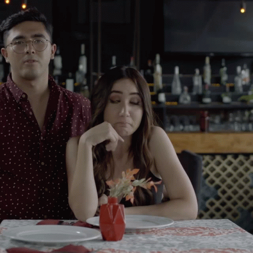 Carolina Diaz makes a face while sitting at a table with a man, expressing a 'told you so' sentiment.