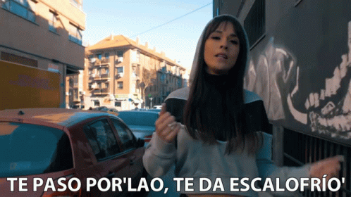 La Zowi performs 'Te Paso Por'Lao, Te Da Escalofrio' on an urban street, delivering lyrics to the camera.