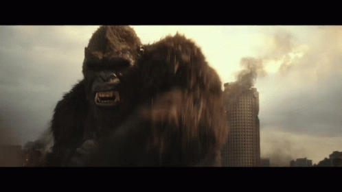 Giant gorilla King Kong from Skull Island roars fiercely, showcasing its immense power and presence.