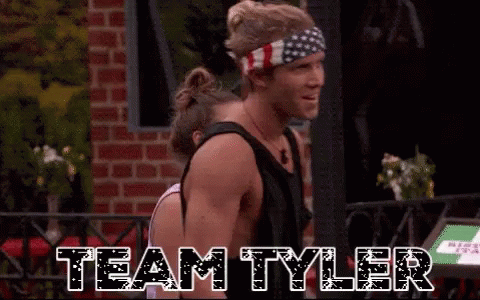 Tyler Crispen, known as 'Veto King', is cheered on by 'Team Tyler', wearing an American flag headband.