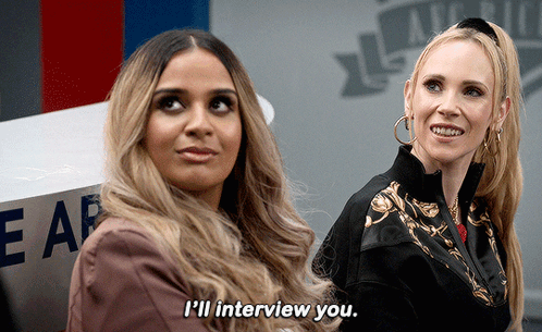 Ambreen Razia tells Shandy Fine, 'I'll interview you,' in a scene related to Ted Lasso.