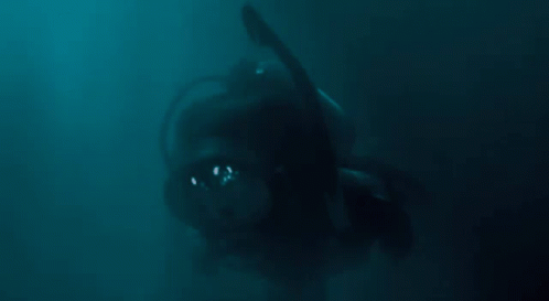 Ted, the Teddy Bear, gives a thumbs up while scuba diving in the dark ocean waters.