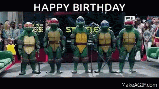 Five Teenage Mutant Ninja Turtles from Ted2 perform a groovy dance to celebrate a happy birthday.