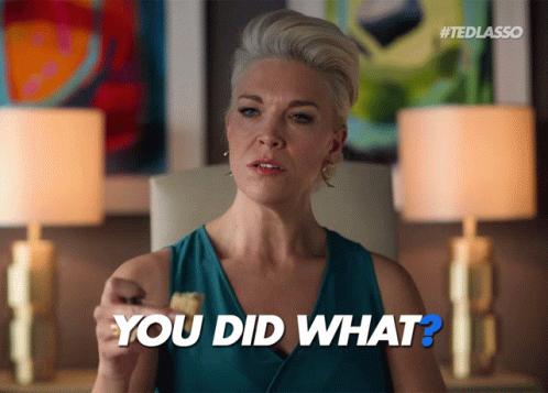 Rebecca Welton (Hannah Waddingham) from Ted Lasso reacts with a shocked 'You Did What?' while holding food.