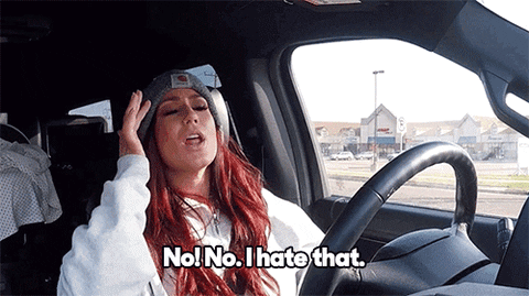 a woman sitting in a car says no no i hate that