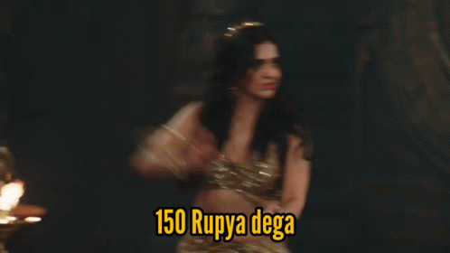 Tejasswi Prakash dances in a sparkly outfit with '150 Rupya dega' text, related to Pratik Sehajpal.