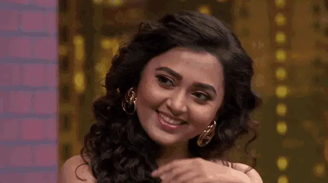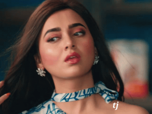 Tejasswiprakash's stylish hair flip, wearing a blue and white scarf and elegant earrings.