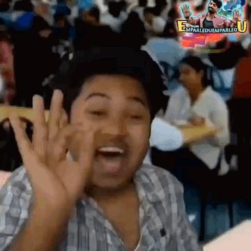 A Telugu comedy actor from Bigbosstelugu makes hilarious faces and gestures, entertaining a crowd.