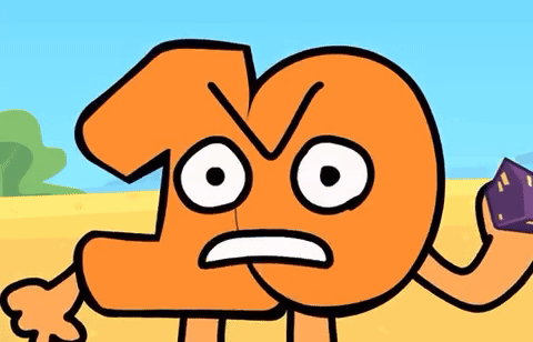 BFDI character Ten expresses a range of emotions, from surprise to anger, while holding a small purple block.