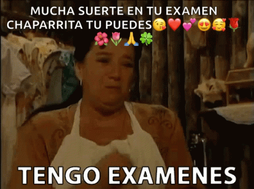 Maria Luisa Alcala as a character from La Usurpadora, worried about exams, with text 'Tengo Examenes'.