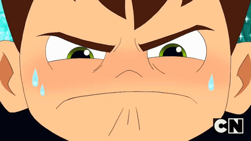 Ben's face transitions from angry to surprised, a moment of sudden realization with sweat drops.