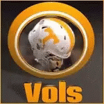 Animated Tennessee Vols football helmet logo rotating with 'Vols' text below.