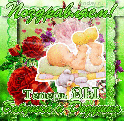 «Теперь вы бабушка и дедушка!» красивая открытка