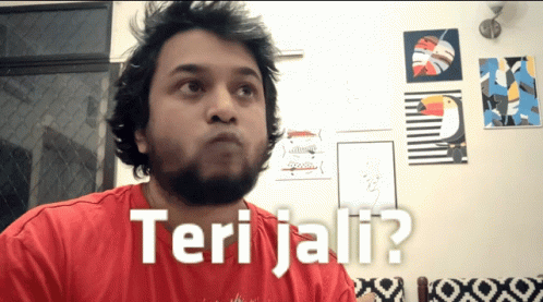 Jose Covaco, wearing a red shirt, asks 'Teri Jali?' with a puffed-up expression.