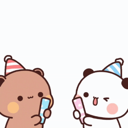 Two cute cartoon bears celebrating a birthday with confetti and a 'Happy Birthday Kaka' message.