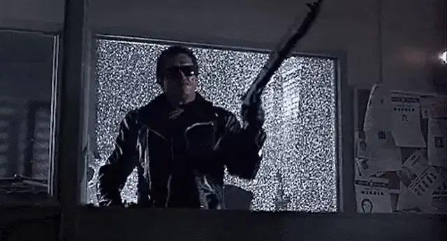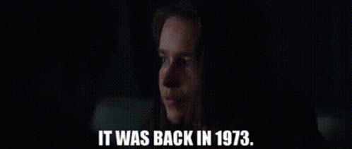Emilia Clarke as Sarah Connor in Terminator, referencing the year 1973 with an on-screen caption.
