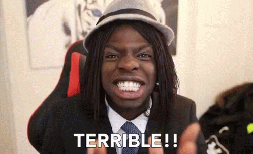 A man in a suit and hat reacts with an emphatic "TERRIBLE!!" expression.