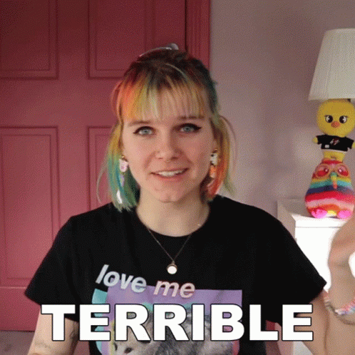 The Queer Kiwi, Savannah, waves and smiles, with the word 'TERRIBLE' displayed prominently.