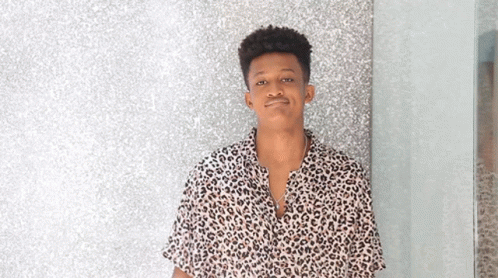 William poses confidently in a leopard print shirt, showcasing his style at Jakarta Fashion Week.