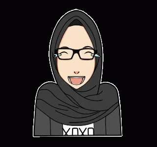 Animated Muslimah in hijab and glasses laughing heartily with a joyful expression.