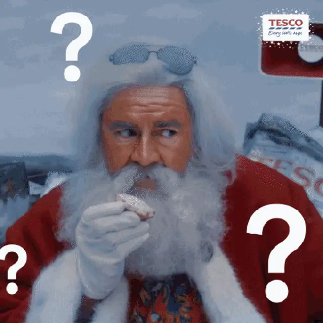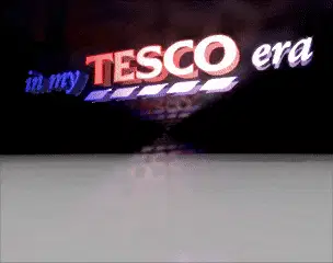 A man wearing a medal around his neck enthusiastically shouts 'Tesco!' with a big smile.