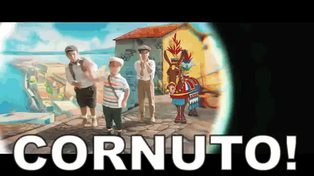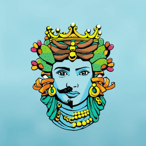 Animated Testadimoro Unnimaffissu artwork, featuring a split male and female face with crowns and Sicilian motifs.