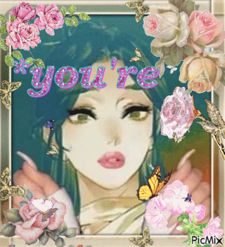 An animated image of Xie Lian from Heaven Official's Blessing (TGCF) surrounded by flowers and butterflies, with 'you're' text.