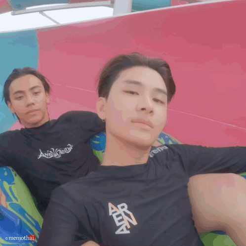 Thaichayanon and Peemwasu enjoying a water slide ride at a water park.