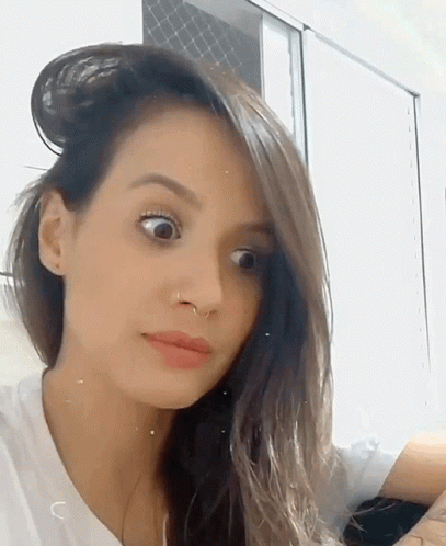 Thaisribeiro's close-up with wide, attentive eyes, observing something intently.