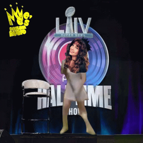 Thalia Puthalia dancing energetically at the Super Bowl Halftime Show, referencing the popular meme.