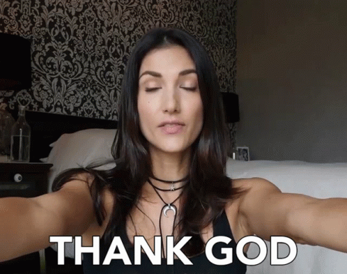 Cindy Sirinya Bishop takes a selfie, expressing gratitude with 'THANK GOD' text overlay and a joyful expression.