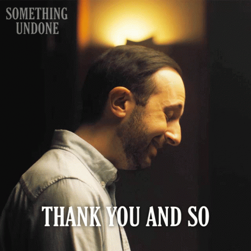 Michael Musi smiles as the text 'Thank You And So Great To Hear That' appears, from the show Something Undone, featuring Farid.