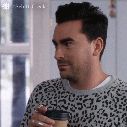 Dan Levy, as David Rose from Schitt's Creek, expresses gratitude while wearing a leopard print sweater.