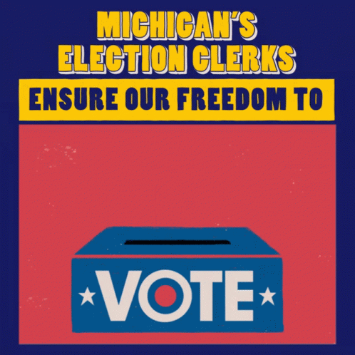 Michigan's election clerks ensure the freedom to vote, depicted with a hand casting a ballot into a ballot box.