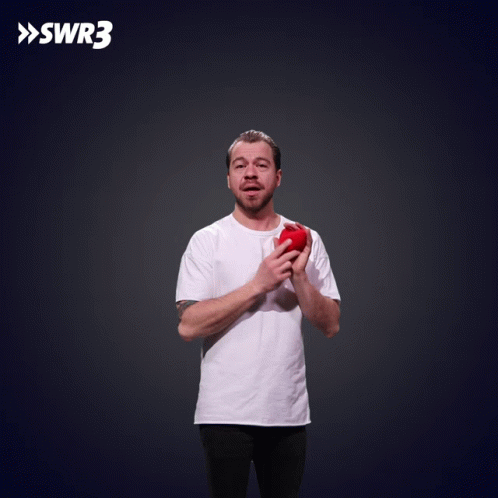 SWR3's Kemal Goga expresses heartfelt thanks and love to his audience, holding a red heart.