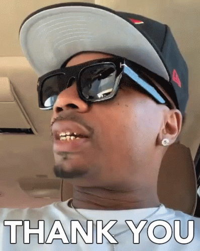Rapper Plies wearing sunglasses and a hat, expressing gratitude with the text 'THANK YOU' displayed.