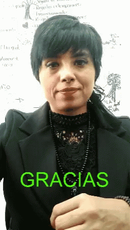 A woman smiles warmly at the camera with the word 'GRACIAS' (Thanks) displayed on screen.