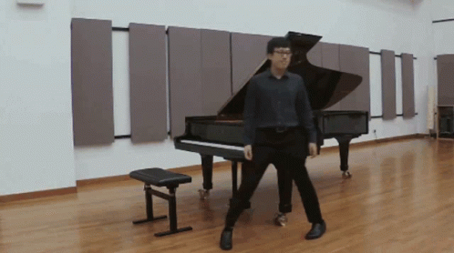 Jovic The Pianist, also known as joshuapianist, bows gracefully in front of a grand piano.