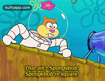 Sandy Cheeks from Spongebob Squarepants exclaims, 'That ain't Spongebob! Spongebob is square!'