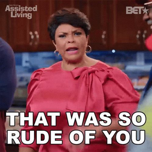 Cora, played by Tamela Mann, expresses her disapproval with a sharp 'That was so rude of you!' in a pink shirt.