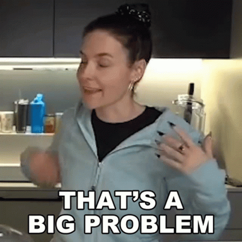 Cristine Raquel Rotenberg, known as Simply Nailogical, reacts with 'That's A Big Problem' in her kitchen.