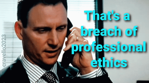 Tony Goldwyn on the phone, stating 'That's a breach of professional ethics' in a serious tone.