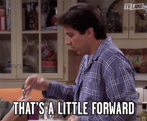 Ray Romano as Ray Barone says 'That's a little forward' while holding a spoon in Everybody Loves Raymond.