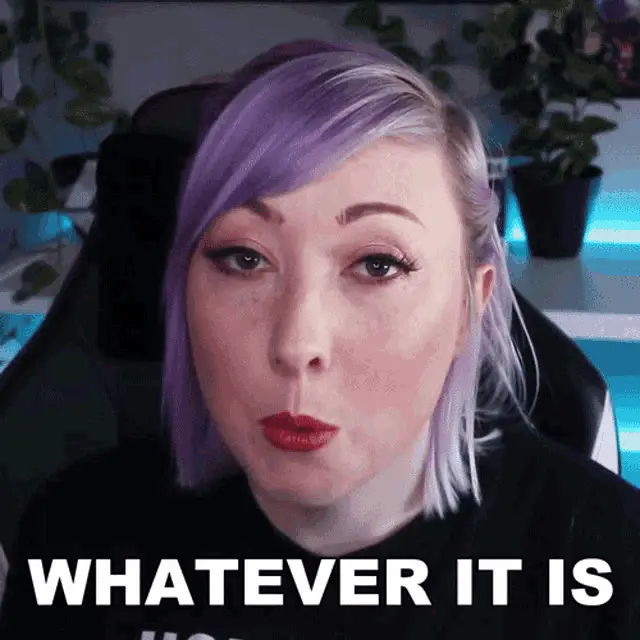 Ashnichrist reacts with 'That's actually a smart move', showing her purple hair.