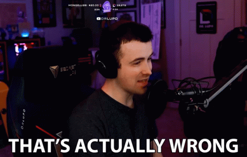 Benjamin Lupo reacts, stating 'That's Actually Wrong' while streaming in his gaming setup.