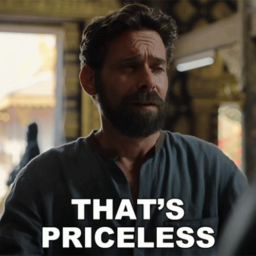 Simon Hardwick (James Callis) reacts with 'That's Priceless' in a scene from Blood & Treasure.