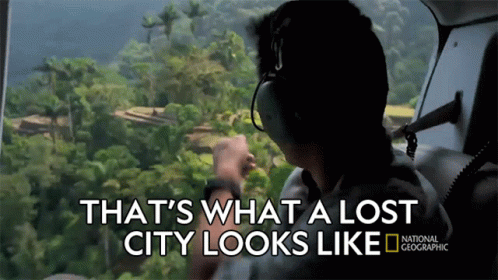 Albert Lin explores a lost city from a helicopter, revealing ancient ruins in a dense jungle.