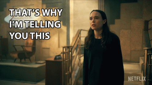 Ellen Page as Vanya Hargreeves from The Umbrella Academy, delivering the line 'That's why I'm telling you this.'