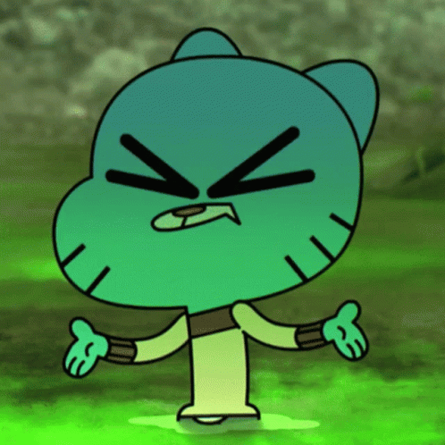 Gumball from The Amazing World of Gumball with glowing eyes, looking surprised or confused.